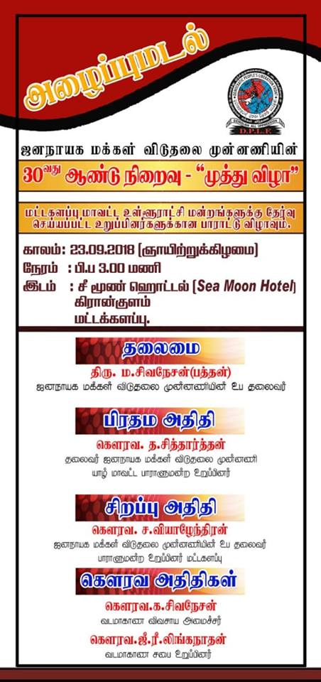 ஜனநாயக மக்கள் விடுதலை முன்னணியின் 30 வது ஆண்டு நிறைவு- “முத்து விழா”