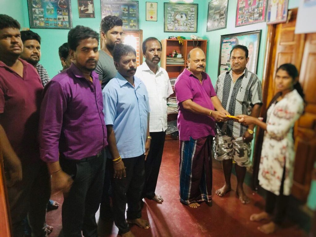 கட்சியின் சுவிஸ் உறுப்பினர் திரு.தவராஜா (தேவன்) அவர்களால் வழங்கப்பட்ட மேற்படி நிதியை ஜனநாயக மக்கள் விடுதலை முன்னணி(புளொட்)யின் உப தலைவர்களுள் ஒருவரும், கட்சியின் வவுனியா மாவட்ட அமைப்பாளரும், வவுனியா நகரசபை உறுப்பினருமான க.சந்திரகுலசிங்கம் (மோகன்) அவர்கள் மாணவியிடம் கையளித்தார்.