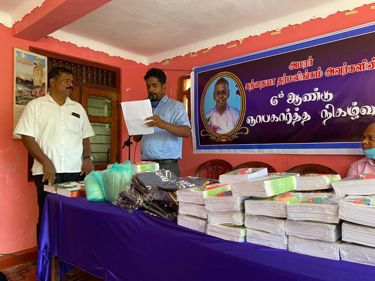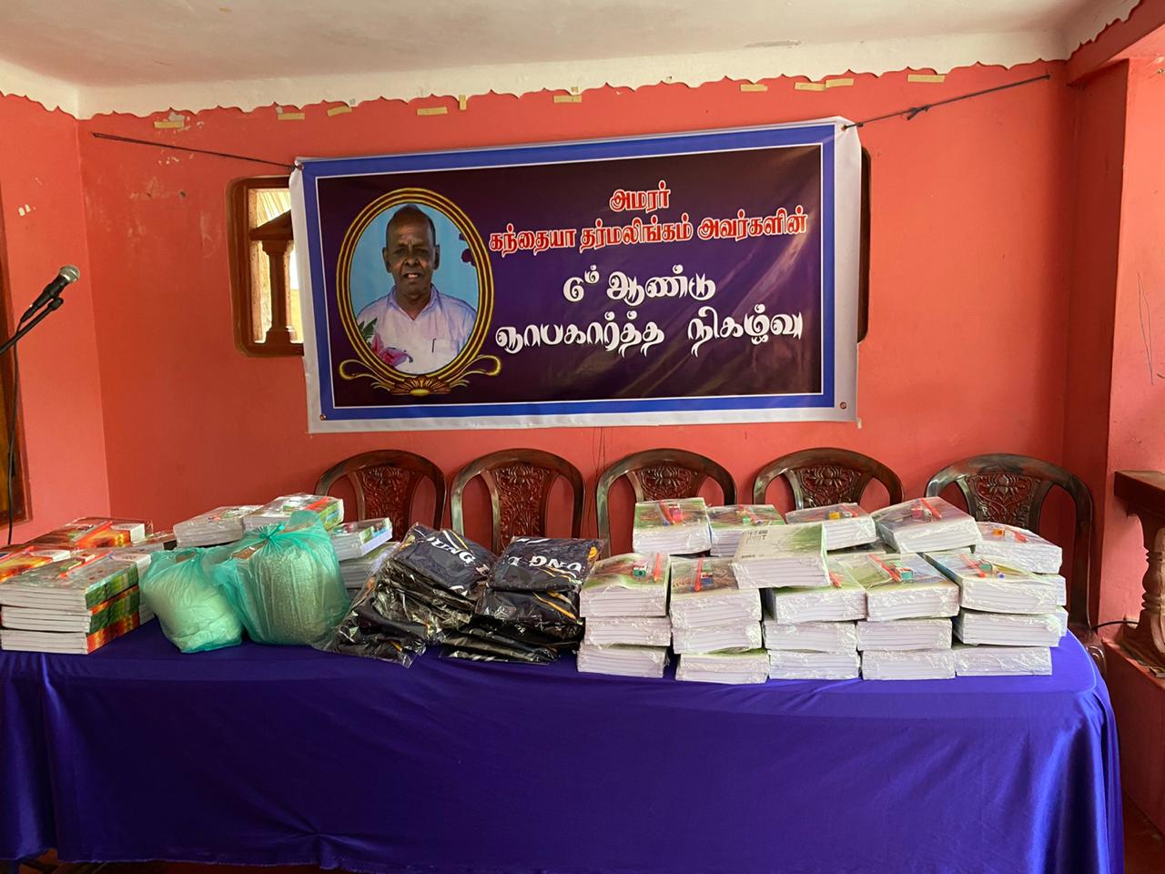 வவுனியா திருநாவற்குளத்தில் அமரர் கந்தையா தர்மலிங்கம் அவர்களின் ஆறாம் ஆண்டு நினைவை முன்னிட்டு அவரது புதல்வன் தர்மலிங்கம் நாகராஜா அவர்களினால் நேற்றையதினம் சமூக நலத் திட்டங்கள் முன்னெடுக்கப்பட்டன.வவுனியா நகரசபை உறுப்பினர் சுந்தரலிங்கம் காண்டீபன் தலைமையில் நடைபெற்ற இந்நிகழ்வில் திருநாவற்குளம் மாணிக்கதாசன், வசந்தன் மைதானத்தைச் சேர்ந்த, யங் லைன் விளையாட்டுக் கழகத்திற்கு 42 வர்ண சீருடைகள், 67 மாணவர்களுக்கான கற்றல் உபகரணங்கள், 50 வறுமைக் கோட்டிற்குட்பட்ட குடும்பங்களுக்கு உலர் உணவு நிவாரண பொருட்கள் என்பன வழங்கி வைக்கப்பட்டது.
