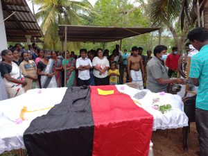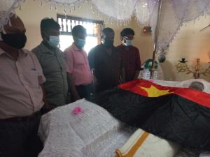 மேலும், இன்றுபிற்பகல் 12.45 மணியளவில் தோழரின் உடல் நல்லடக்கத்திற்காக கோயில்குளம் இந்து மயானத்திற்கு ஊர்தியில் ஊர்வலமாக எடுத்துச் செல்லப்பட்டு இறுதிக் கிரியைகள் இடம்பெற்று பிற்பகல் 1.45 மணியளவில் நல்லடக்கம் செய்யப்பட்டது.