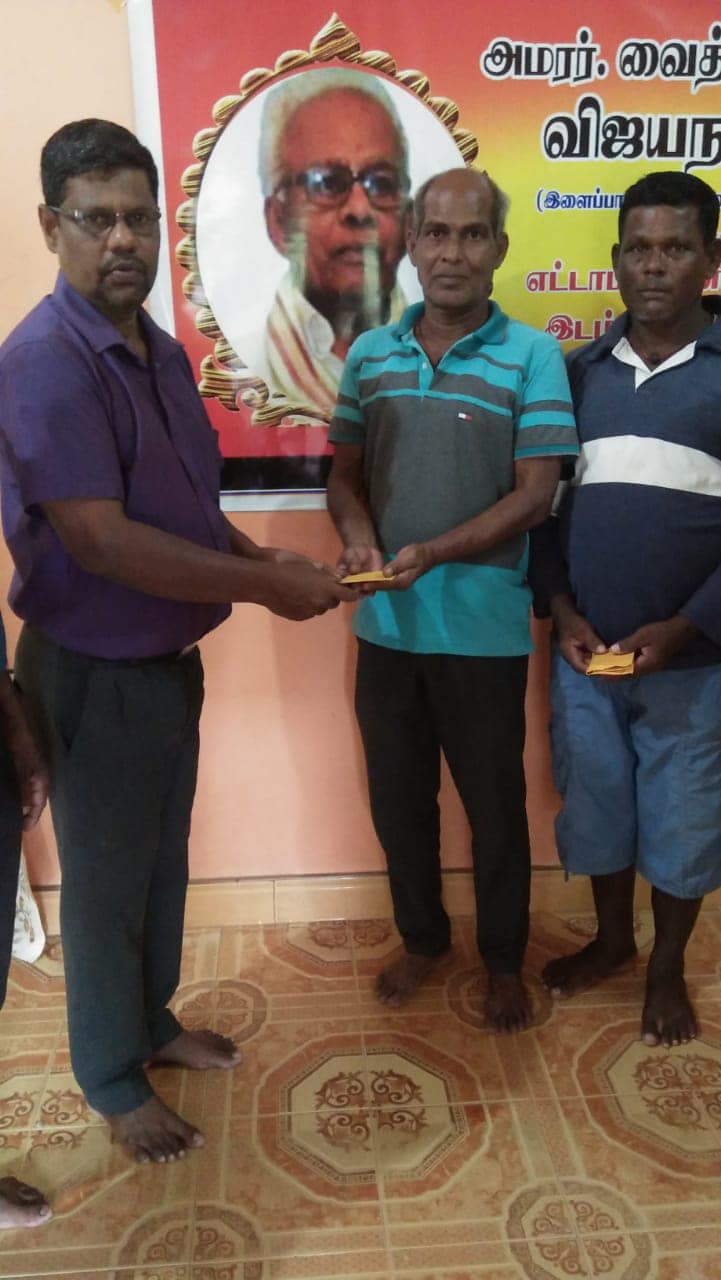 மட்டக்களப்பு சேற்றுக்குடாவைச் சேர்ந்த க.சுந்தரலிங்கம் மற்றும் மாவடிவேம்பைச் சேர்ந்த சீ.சங்கரப்பிள்ளை ஆகியோருக்கு தலா 30,000/ ரூபா வீதம் மொத்தம் 60,000/- ரூபா நிதி சுய தொழில் முயற்சியாக கோழிவளர்ப்பில் ஈடுபடுவதற்காக கட்சியின் மட்டக்களப்பு மாவட்ட அமைப்பாளர் ம.நிஸ்கானந்தராஜா தலைமையில் கட்சியின் சமுக மேம்பாட்டுப் பிரிவின் பொறுப்பாளர் ந.ராகவன், கட்சியின் மாவட்ட செயலாளர் கா.கமலநாதன் ஆகியோர் முன்னிலையில் வழங்கிவைக்கப்பட்டது.