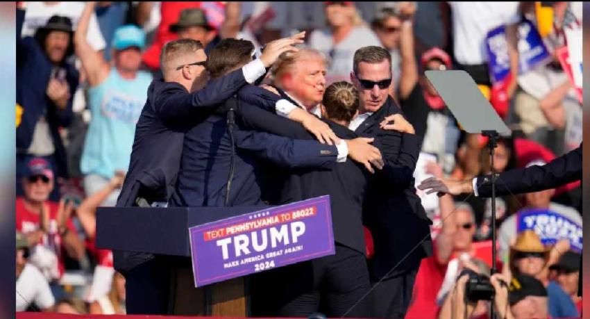 பென்ஸில்வேனியாவின் பட்லர் நகரில் நடைபெற்ற அமெரிக்க முன்னாள் ஜனாதிபதி டொனல்ட் ட்ரம்பின் பிரசார கூட்டத்தில் துப்பாக்கிச்சூடு நடத்தப்பட்டுள்ளது. குடியரசுக் கட்சியின் ஜனாதிபதி வேட்பாளரான டொனல்ட் ட்ரம்ப் இந்த கூட்டத்தில் உரையாற்றும் போது இந்த துப்பாக்கிச்சூடு நடத்தப்பட்டுள்ளது. இதனைத் தொடர்ந்து, டொனல்ட் ட்ரம்ப், அவரின் மெய்பாதுகாவளர்களால் மேடையில் இருந்து இடைநடுவில் பாதுகாப்பாக அழைத்து செல்லப்பட்டார். அவருக்கு எந்த பாதிப்பும் இல்லை என உறுதிப்படுத்தப்பட்டுள்ளதாக சர்வதேச ஊடகங்கள் தெரிவித்துள்ளன.  Read more