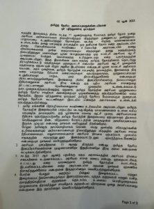 1. தமிழ் மக்களின் பிறப்புரிமையான சுயநிர்ணய உரிமையின் அடிப்படையிலும் தமிழ் தேசத்தின் இறைமையின் பாற்பட்டும் வடக்கு கிழக்கு மாகாணங்களை உள்ளடக்கிய மரபுவழித் தாயகத்தில், ஒரு பூரணமான சம்ஸ்டி ஆட்சி முறை, அரசியல்சாசன ரீதியாக ஏற்படுத்தப்படுவதே தமிழ்த் சேத்தின் இறைமையை ஏற்பதாகவும் தியாகம் செறிந்ததுமான நீண்ட விடுதலைப் போராட்டத்தின் அர்த்தமுள்ள அங்கீகாரமாகவும் இருக்க முடியும் என்பதை நாங்கள் வலியுறுத்தி நிற்கின்றோம்.