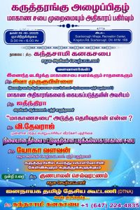 ‘மாகாணசபை முறைமையும் அதிகாரப்பகிர்வும்’ எனும் தலைப்பில், ஜனநாயக தமிழ் தேசிய கூட்டணியின் (DTNA) ஒழுங்கமைப்பில் தாயகத்தில் நடாத்தப்பட்டு வருகின்ற கருத்தரங்குகளின் ஒரு பகுதியாக, எதிர்வரும் 19.10.2025 அன்று கனடாவிலும், ஜனநாயக தமிழ் தேசிய கூட்டணியின் கனடா நாட்டுப் பிரதிநிதிகளால் கருத்தரங்கு ஒன்று ஏற்பாடு செய்யப்பட்டுள்ளது.Posted by plotenewseditor on 18 October 2025