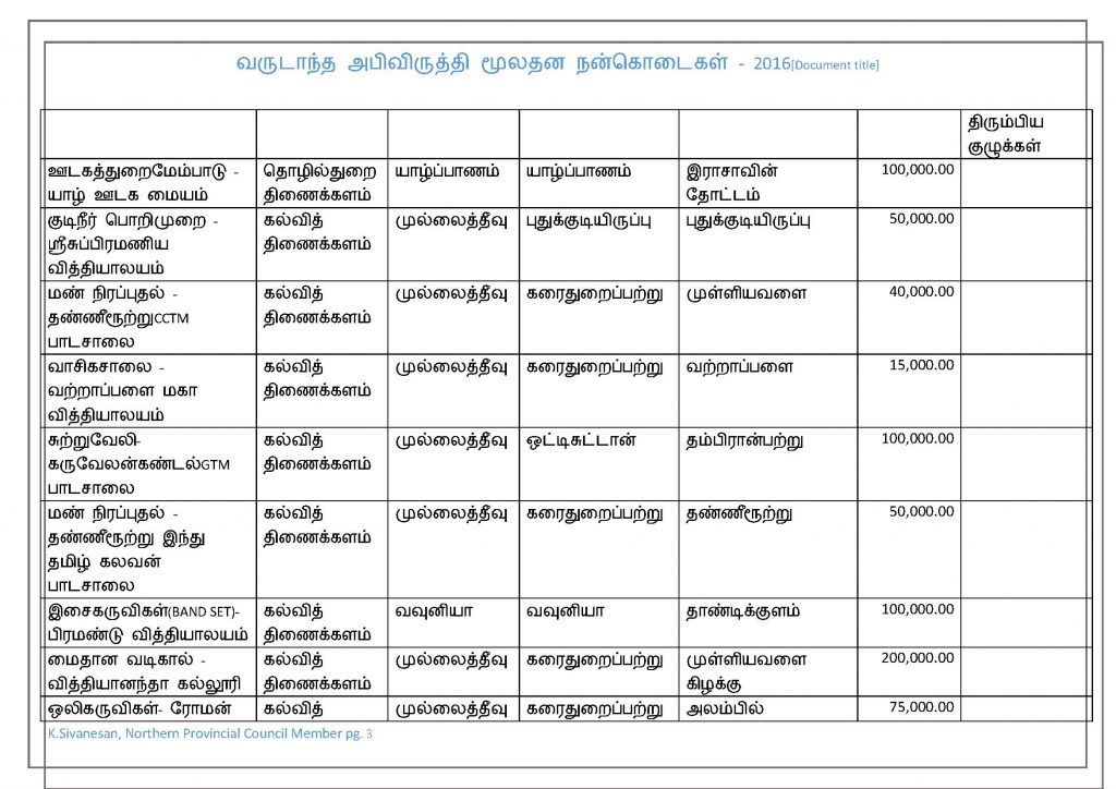 52 பொது அமைப்புக்களின் வளர்ச்சிக்காக மாகாணசபை உறுப்பினர் சித்தார்த்தன் நிதி ஒதுக்கீடு